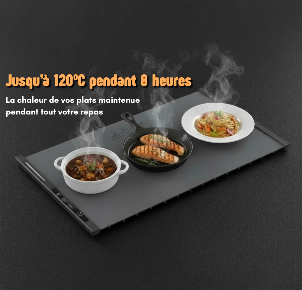 Préparez vos plats à l'avance sans stress. Grâce à ce tapis chauffant, vos repas restent bien chauds jusqu'au moment de passer à table.