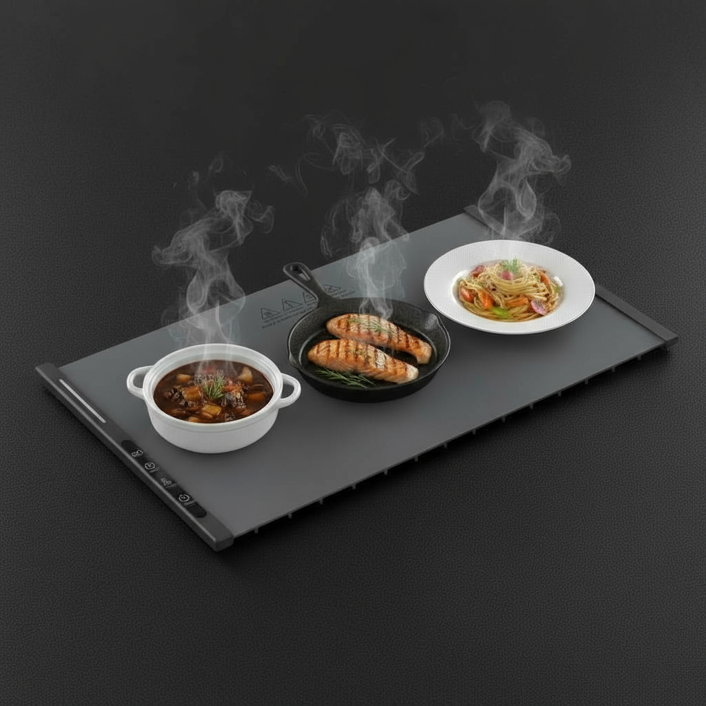 Le tapis chauffe sensiblement en seulement 5 secondes et atteint la température souhaitée en quelques minutes. Avec 8 niveaux de chaleur réglables de 50 °C à 120 °C, vos plats seront parfaitement chauds et prêts à être servis en un rien de temps.